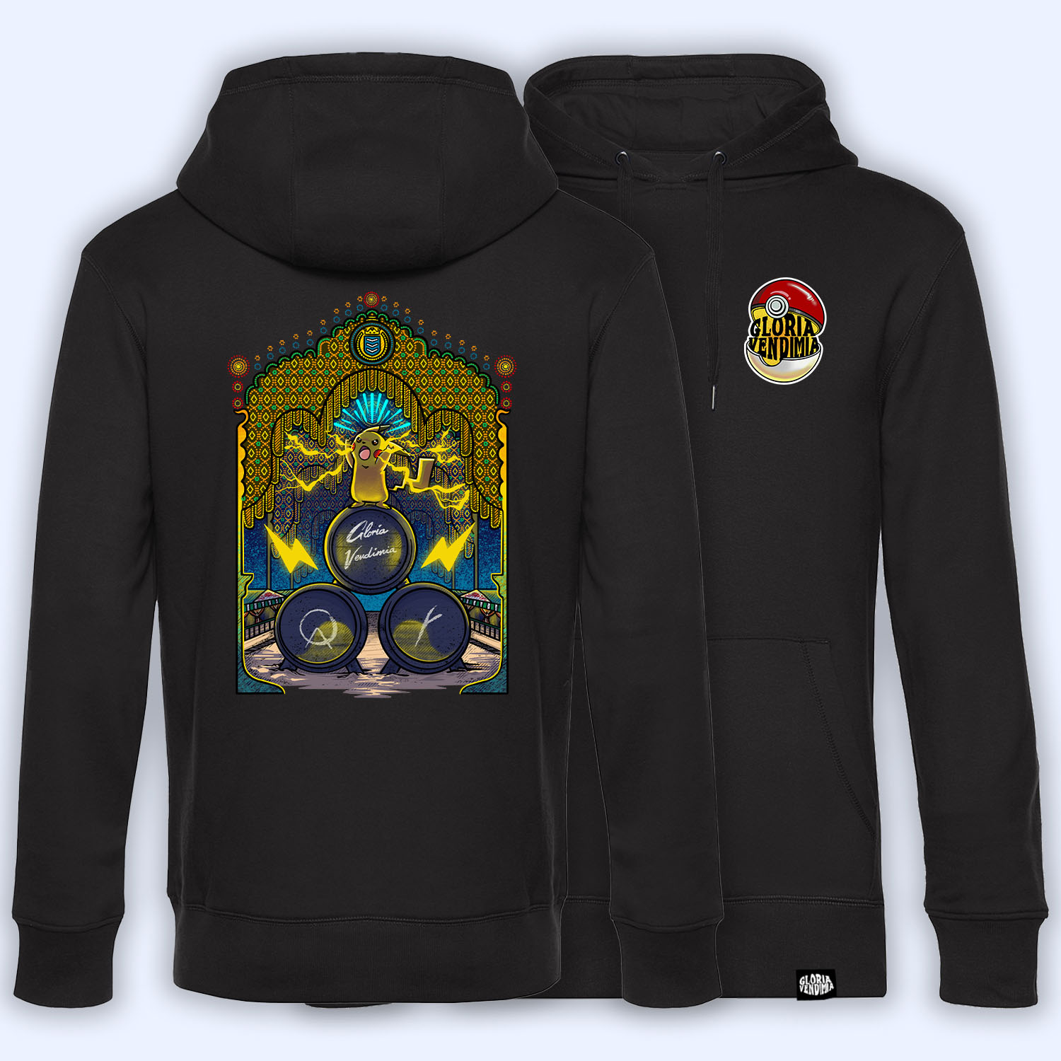 Sudadera ‘Pikalumbrao’ de Gloria Vendimia®, con y sin capucha, disponible en negra, desde la XS hasta la 4XL.
