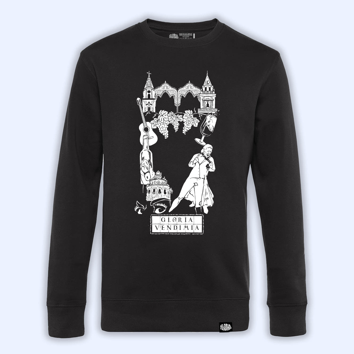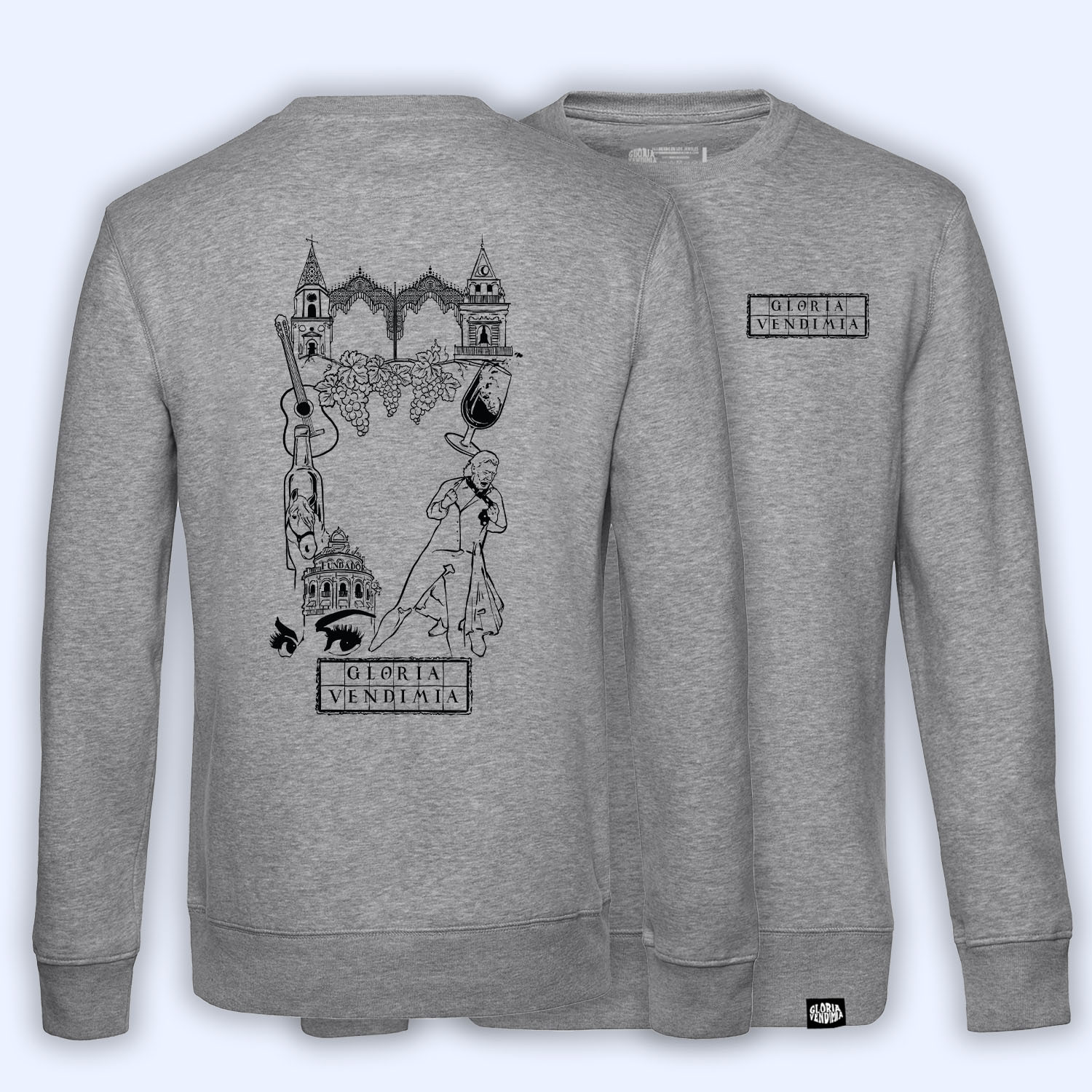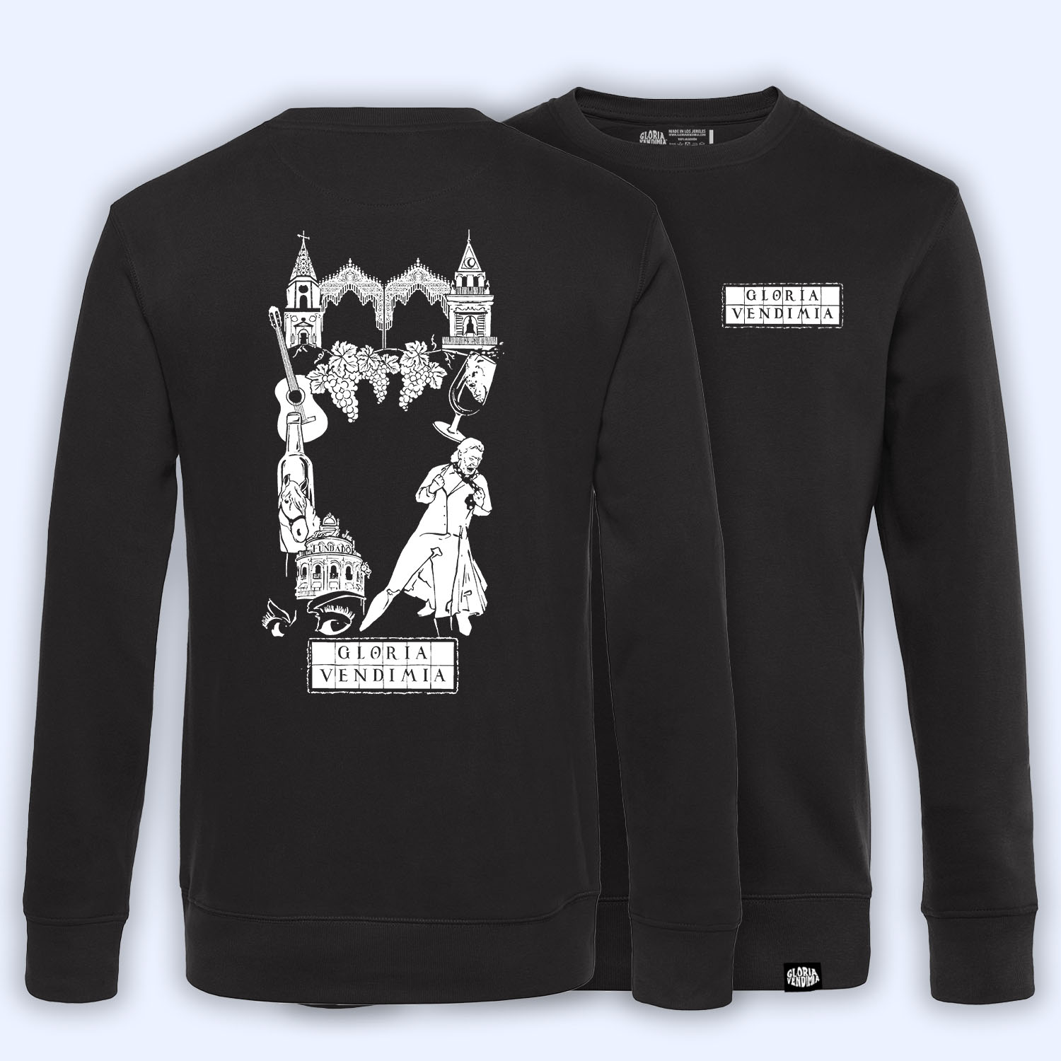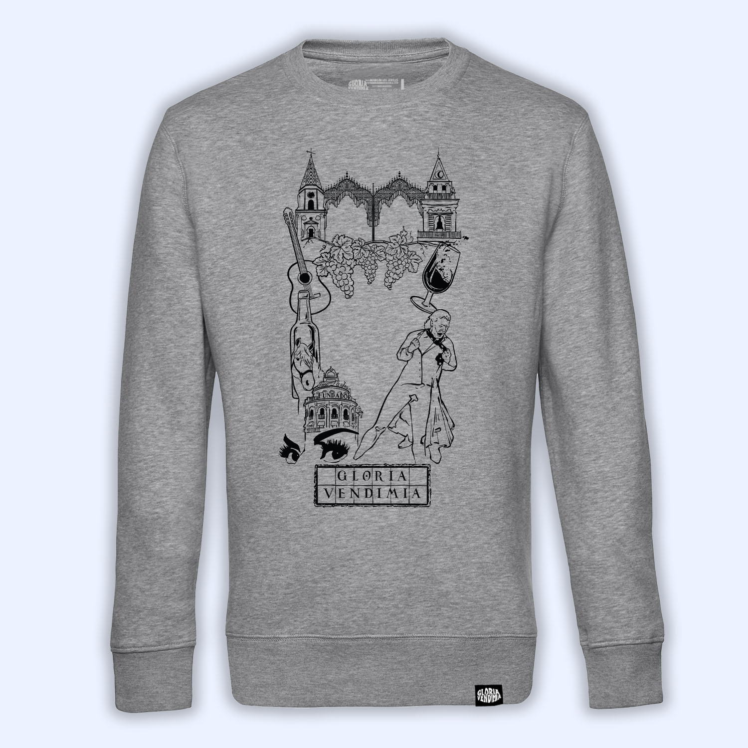 Sudadera ‘Viva Jeré’ de Gloria Vendimia® (pecho o frontback), disponible en varios colores, en tallas de la XS a la 4XL.