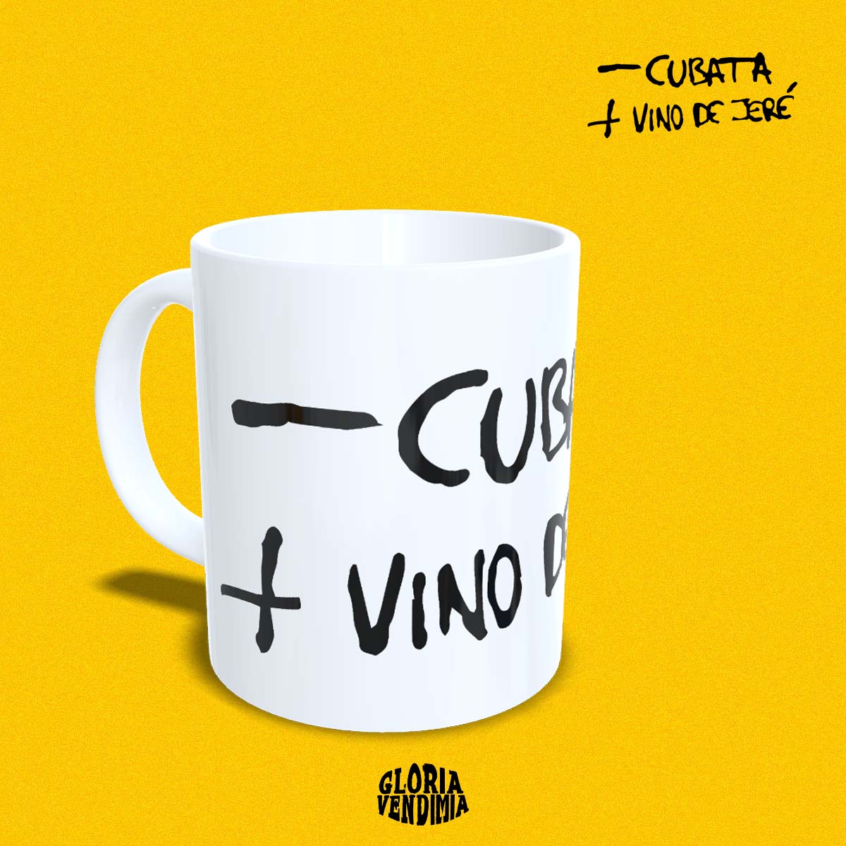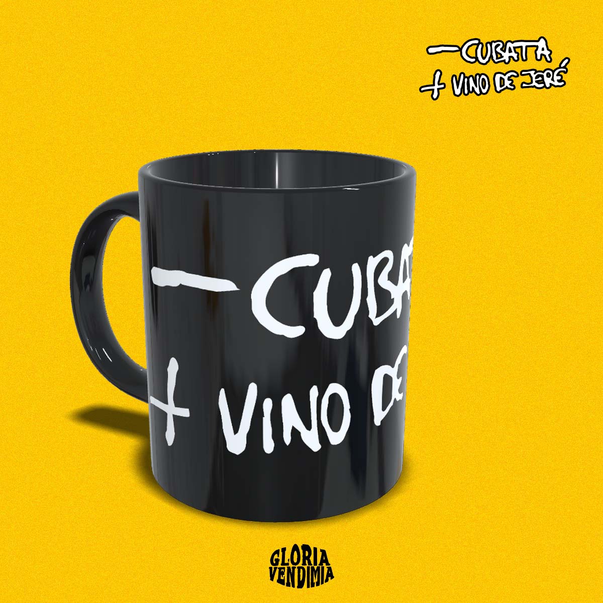 Taza con diseño ‘- cubata + vino de Jeré’. Disponible en color blanco o color negro.
