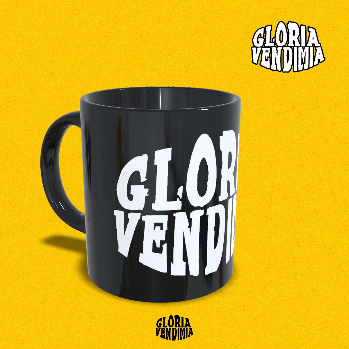 Taza de color negro con nuestro logo: GLORIA VENDIMIA.